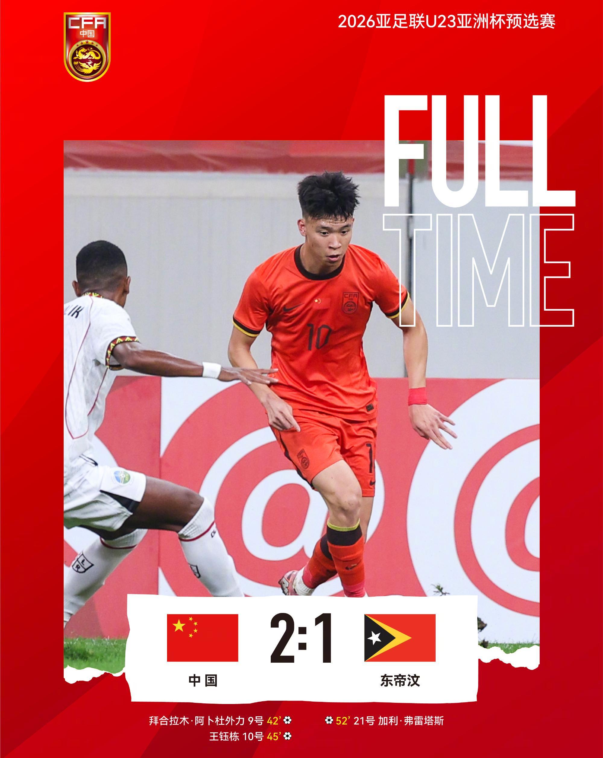 值得一提的是,如果中国U23队以2-0的比分战胜东帝汶U23队,那就可以成为4个成绩最好的小组第2,可惜,他们还是被东帝汶攻破了球门。这个丢球,真有可能影响到中国U23队出线形势。