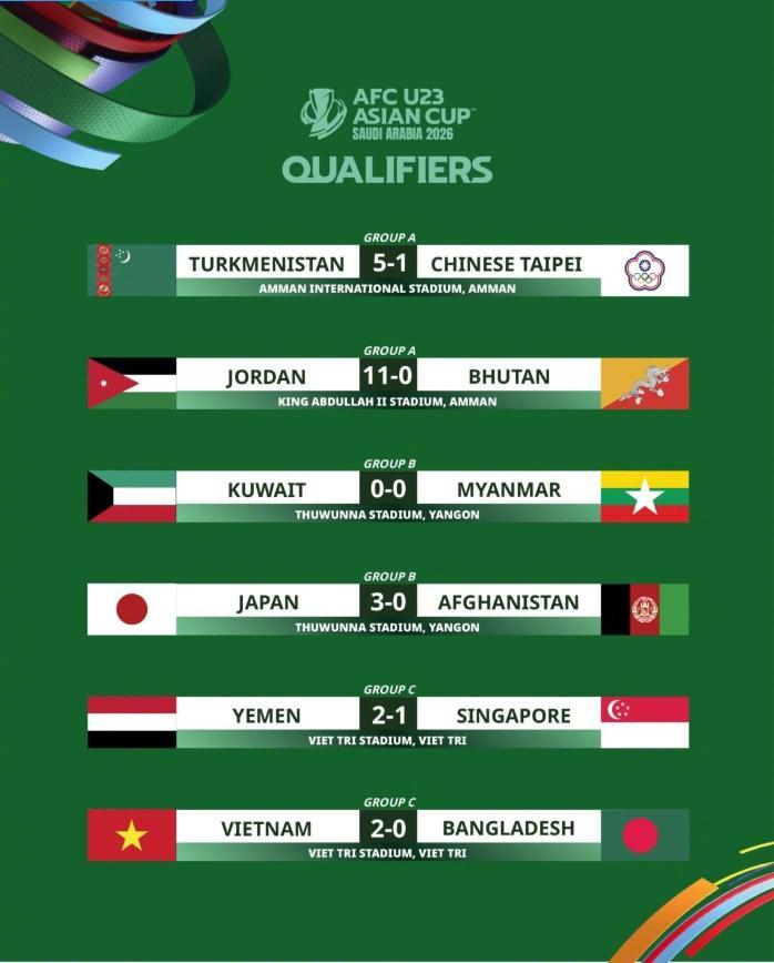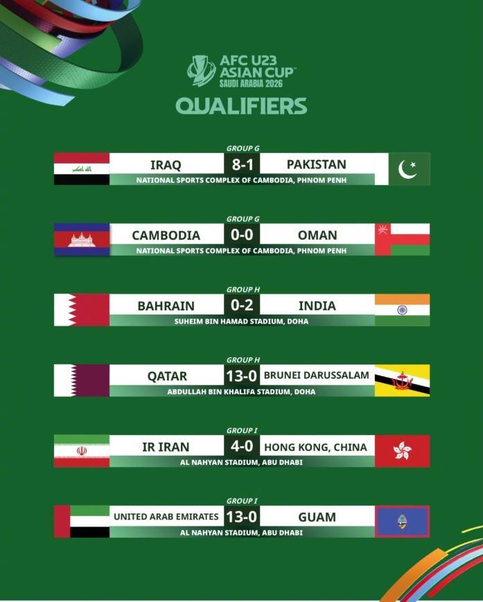 北京时间9月4日凌晨,伴随着阿联酋U23队以13-0的悬殊比分,狂胜关岛U23队,2026亚足联U23亚洲杯预选赛首轮11个小组的比赛全部结束。本轮过后,备受关注的中国U23队,在11个小组第2中,并列位居第4,出线形势非常凶险。这要求接下来的2场比赛,必须全力以赴,尤其下一轮对阵北马里亚纳群岛队,要尽可能多拿净胜球。