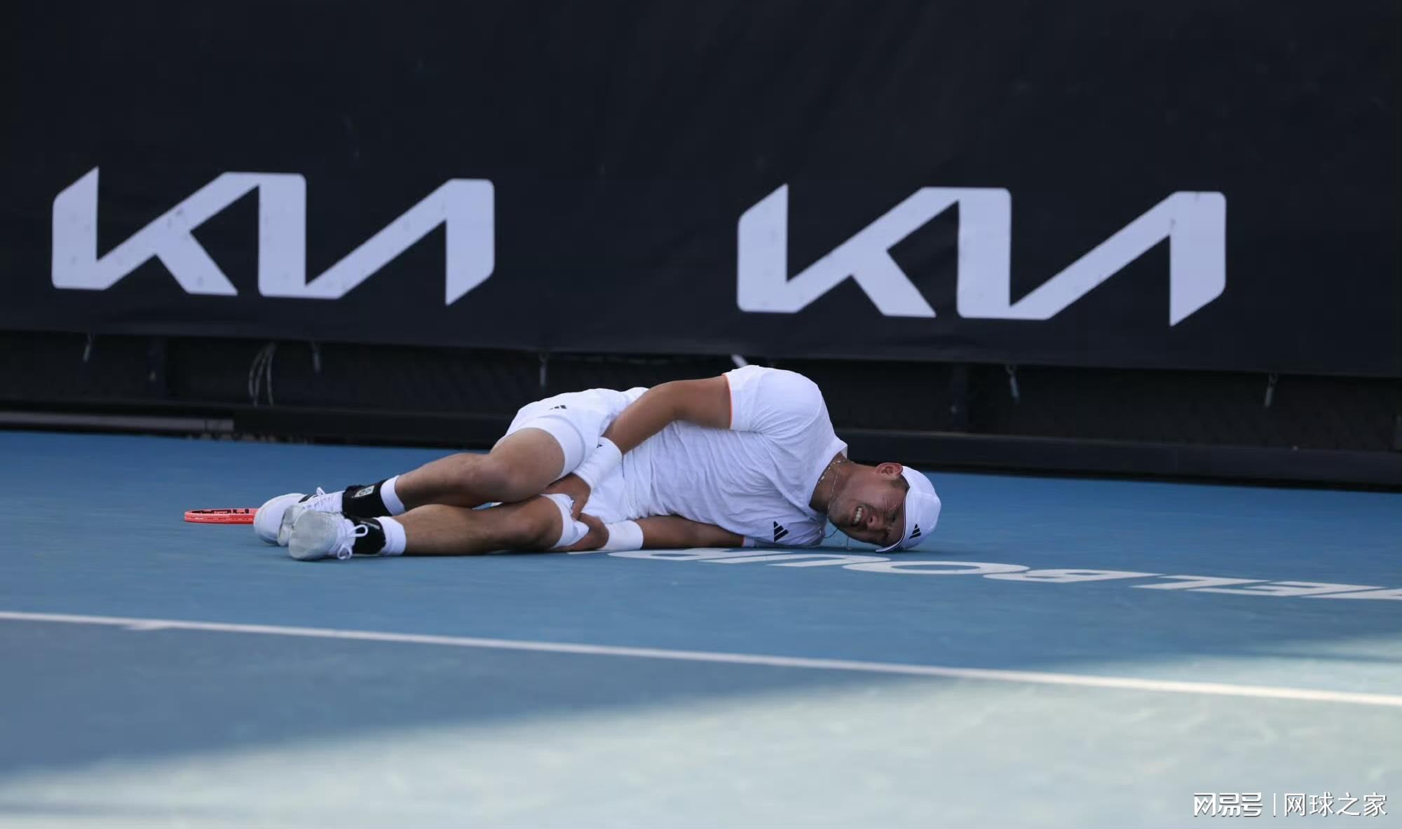 与此同时,在一场男子单打比赛中,中国选手吴易昺与斯皮泽里上演了五盘大战。在连续输掉前两盘后,吴易昺顽强反击,通过抢七赢下第三盘,又以6-4拿下第四盘,将比赛拖入决胜盘。决胜盘战至2-3,吴易昺的发球局40-40平分关键时刻,一个Ace球落地时,他感到腰部不适——腰好像有点撑到了,随后发出了双误。紧接着,他在落地时未能站稳,导致右腿开始抽筋,随后左腿和腹肌也接连抽筋,最终以3-6输掉决胜盘。