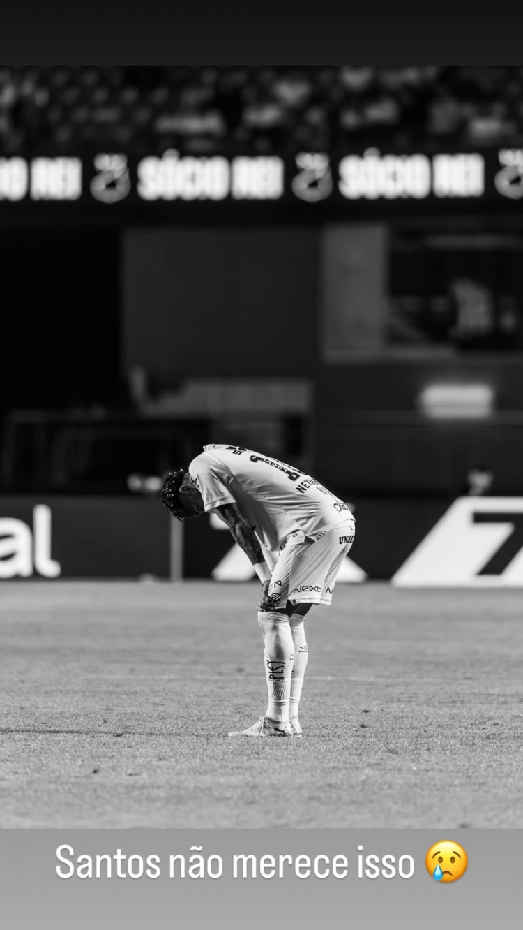 这位巴西球星随后在社交平台发布黑白照片,画面中他神情黯然,配文写道:"这样的结果不该属于桑托斯😢",字里行间透露出深深的自责与痛心。